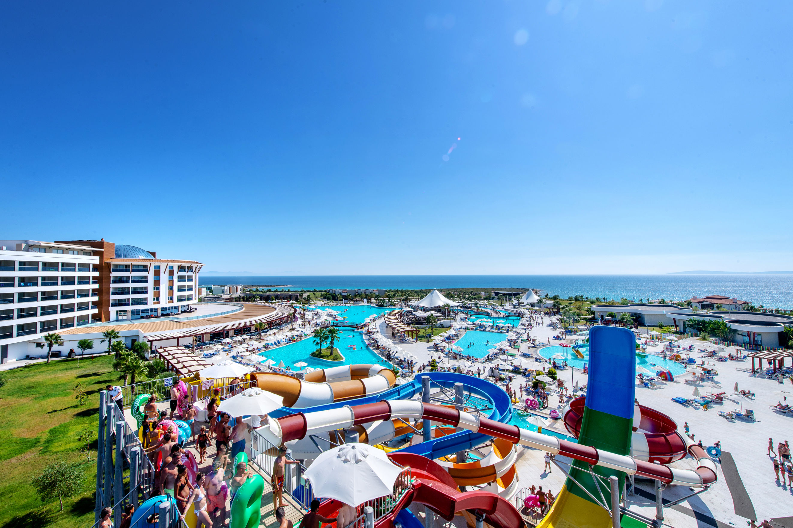 Zomer Wanneer je tussen 15-04-2026 en 31-10-2026 in deze accommodatie verblijft, is onderstaande informatie van toepassing. * Ligging * Rustige ligging * Gelegen aan het privéstrand * Zandstrand * Ligbedden * Parasol * Centrum van Didim op circa 5 kilometer * Dichtstbijzijnde winkel op circa 5 kilometer * Dichtstbijzijnde restaurant op circa 5 kilometer * Dichtstbijzijnde bar op circa 5 kilometer * Altinkum op circa 7 kilometer * Bushalte op circa 20 meter * Taxistandplaats op circa 20 meter * Algemeen & faciliteiten * 3 gebouwen * Maximaal 4 verdiepingen * 660 kamers * Receptie * 24 uur per dag * Lobby * 4 liften * Niet in elk gebouw een lift * Bagageruimte * Wifi in alle openbare ruimtes * Winkel (minimarkt) * Wasservice tegen betaling * Doktersservice tegen betaling * Tuin * Privé parkeergelegenheid * Restaurants & bars * Buffetrestaurant * 4 à-la-carterestaurants (vooraf reserveren) tegen bijbetaling * Italiaans restaurant * Mexicaans restaurant * Turks restaurant * Visrestaurant * 2 snackbars * 4 drinkgelegenheden * Bar * Beachbar * Lobbybar * Poolbar * Activiteiten & ontspanning * Aerobics * Beachvolleybal * Biljart tegen betaling * Boccia * Boogschieten * Darts * Duikcentrum tegen betaling * Fitness * Tafeltennis * Tennis * Voetbal * Watersporten tegen betaling * Yoga * Spa Center * Binnenzwembad * Sauna * Hamam * Massages tegen betaling * Schoonheidsbehandelingen tegen betaling * Animatie voor volwassenen * Shows * Zwembaden * 2 buitenzwembaden * Aquapark * 11 glijbanen voor volwassenen * De glijbanen hebben verschillende openingsperiodes * Aquapark voor kinderen * 11 glijbanen voor kinderen * De glijbanen hebben verschillende openingsperiodes * Zonneterras * Ligbedden * Parasol * Badhanddoekenservice * Kinderfaciliteiten * Mini club (4-12 jaar) * 7 keer per week * Minidisco * Buitenspeeltuin * Babybedje als preferentie toe te voegen in het boekingsformulier * Verzorging * Ultra All Inclusive * Ontbijt in buffetvorm (07.00-10.00 uur) * Laat ontbijt in buffetvorm (10.00-11.00 uur) * Lunch in buffetvorm (12.30-14.30 uur) * Diner in buffetvorm (19.00-21.00 uur) * Snacks (12.00-16.00 uur) * Koffie, thee & koekjes (13.00-18.00 uur) * IJs (13.00-18.00 uur) * Middernachtsnack (00.00-01.00 uur) * Selectie geïmporteerde alcoholische drankjes (24 uur per dag) * Selectie lokale (non-)alcoholische drankjes (24 uur per dag) * Tegen betaling: dineren in alle à-la-carterestaurants en import drankjesHotelkamers * 2-persoonskamer Zwembadzicht D2P * Oppervlakte van circa 27 m² * Zwembadzicht * Airconditioning * Kluisje * Televisie * Telefoon tegen betaling * Eet- en drinkfaciliteiten * Koffie- en theefaciliteiten * Minibar * Badkamer met douche, toilet, föhn en badslippers * Wifi * Balkon (zitje) * 2-persoonskamer Voordeel DE * Speciaal tarief * Locatie kan afwijken ten opzichte van andere kamertypes * Faciliteiten kunnen afwijken ten opzichte van andere kamertypes * Oppervlakte van circa 30 m² * Airconditioning * Kluisje * Televisie * Telefoon tegen betaling * Eet- en drinkfaciliteiten * Koffie- en theefaciliteiten * Minibar * Badkamer met douche, toilet, föhn en badslippers * Wifi * Geen balkon of terras * 2-persoonskamer Standaard DZ1 * Oppervlakte van circa 27 m² * Airconditioning * Kluisje * Televisie * Telefoon tegen betaling * Eet- en drinkfaciliteiten * Koffie- en theefaciliteiten * Minibar * Badkamer met douche, toilet, föhn en badslippers * Wifi * Balkon of terras (zitje) * 2-persoonskamer Deluxe Landzicht DDL * Oppervlakte van circa 30 m² * In het hoofdgebouw * Landzicht * Airconditioning * Kluisje * Televisie * Telefoon tegen betaling * Eet- en drinkfaciliteiten * Koffie- en theefaciliteiten * Minibar * Badkamer met douche, toilet, föhn en badslippers * Wifi * Balkon of terras (zitje) * 2-persoonskamer Deluxe Zeezicht DDM * Oppervlakte van circa 30 m² * In het hoofdgebouw * Zeezicht * Airconditioning * Kluisje * Televisie * Telefoon tegen betaling * Eet- en drinkfaciliteiten * Koffie- en theefaciliteiten * Minibar * Badkamer met douche, toilet, föhn en badslippers * Wifi * Balkon of terras (zitje) * 2-persoonskamer Terras DT * Oppervlakte van circa 27 m² * Airconditioning * Kluisje * Televisie * Telefoon tegen betaling * Eet- en drinkfaciliteiten * Koffie- en theefaciliteiten * Minibar * Badkamer met douche, toilet, föhn en badslippers * Wifi * Balkon of terras (zitje) * 2-persoonskamer Swimup DW * Oppervlakte van circa 27 m² * Airconditioning * Kluisje * Televisie * Telefoon tegen betaling * Eet- en drinkfaciliteiten * Koffie- en theefaciliteiten * Minibar * Badkamer met douche, toilet, föhn en badslippers * Wifi * Terras (zitje) * Gemakkelijke toegang tot het gedeelde zwembad * Familiekamer Deluxe FD * Oppervlakte van circa 50 m² * Woon-/slaapkamer * 2 eenpersoonsbedden * Slaapbank voor één persoon * Eén slaapkamer * Airconditioning * Kluisje * Televisie * Telefoon tegen betaling * Eet- en drinkfaciliteiten * Koffie- en theefaciliteiten * Minibar * Badkamer met douche, toilet, föhn en badslippers * Wifi * Balkon of terras (zitje) * Familiekamer Deluxe FD1 * Oppervlakte van circa 70 m² * Woon-/slaapkamer * Slaapbank voor twee personen * 2 slaapkamers * Airconditioning * Kluisje * Televisie * Telefoon tegen betaling * Eet- en drinkfaciliteiten * Koffie- en theefaciliteiten * Minibar * Badkamer met douche, toilet, föhn en badslippers * Wifi * Balkon of terras (zitje) * Junior suite Deluxe JD * Oppervlakte van circa 42 m² * Eén grote kamer * Airconditioning * Kluisje * Televisie * Telefoon tegen betaling * Eet- en drinkfaciliteiten * Koffie- en theefaciliteiten * Minibar * Badkamer met douche, toilet, föhn en badslippers * Wifi * Balkon of terras (zitje)