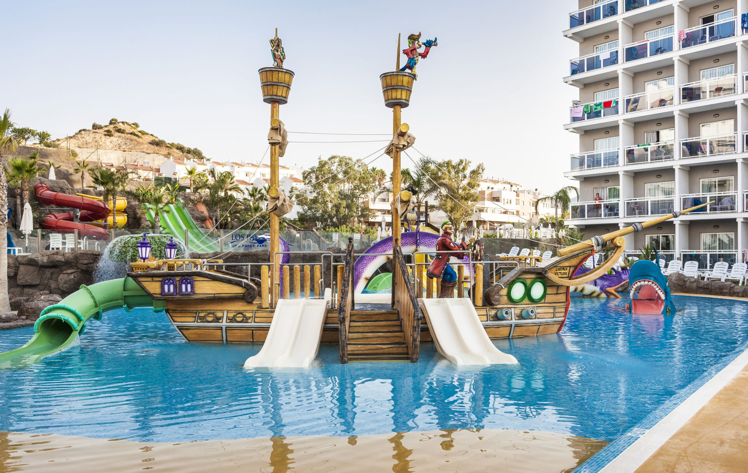 Direct naar: * Ligging Globales Los Patos Park () * Faciliteiten () * Restaurants & Bars () * Hotelkamers () * Sport & Ontspanning () * Kinderfaciliteiten () * Zwembaden () * Verzorging Zomer () Ligging Globales Los Patos Park * In het rustige deel van Benalmádena * Zeer centraal gelegen * Op ca. 250 m van het strand Playa Arroyo de la Miel * Puerto Marina op ca. 1 km afstand * Gezellige winkels en de bruisende haven ‘Puerto Marina’ van Benalmádena op ca. 1 km * Bushalte op ca. 150 m van de accommodatie * Wereldstad Malaga op ca. 20 km (bereikbaar met trein) Faciliteiten * 276 kamers verdeeld over 1 gebouw met 10 etages * 3 liften aanwezig * 24-uursreceptie * Lobby met zitje * Tuin met zonneterras * Bagageruimte * Gratis wifi in het hele hotel * Wasservice* * Dokterservice* (op aanvraag) * Winkeltje* * Privé parkeergelegenheid* * Openbare parkeergelegenheid * Tegen betaling Restaurants & bars * Buffetrestaurant voor ontbijt, lunch en diner * Poolbar en salonbar Hotelkamers * Standaardkamer (min. 1 pers. en max. 2 volw. + 2 kind.) * Moderne kamer (18 m²) * Telefoon* * Airconditioning (gratis) * Satelliettelevisie * Koelkastje * Kluisje* * Koffie-/theezetfaciliteiten* * Gratis wifi * Bad/douche * Toilet * Föhn * De meeste kamers hebben een balkon met zitje * Tegen betaling Sport & Ontspanning * Tafeltennis * Aerobics * Boogschieten * Boccia * Biljart* * Wervelend animatieprogramma * Dans-, cabaret-, en flamencoshow *Tegen betaling Kinderfaciliteiten * 2 kinderzwembaden met glijbanen * Miniclub (4-12 jaar, 7 dagen per week) * Minidisco * Gameroom (tegen betaling) * Speeltuintje * Babybedjes (op aanvraag) Zwembaden * 2 buitenzwembaden * 2 aparte kinderbaden * Glijbanen voor jong en oud * Zonneterras met ligbedden en parasols * Badhanddoekenservice (met borg en tegen betaling) Verzorging Zomer: Globales Los Patos Park * Verblijf o.b.v. Logies & Ontbijt: * Ontbijt in buffetvorm * Tegen een meerprijs verblijf je o.b.v. Halfpension: * Ontbijt en diner in buffetvorm * Tegen een meerprijs verblijf je o.b.v. All Inclusive: * Ontbijt in buffetvorm (08.00-10.00 uur) * Lunch in buffetvorm (13.30-15.30 uur) * Diner in buffetvorm (19.00-21.30 uur) * Diverse snacks (12.00-19.00 uur) * Koffie, thee en koekjes (10.00-01.00 uur) * IJs (10.00-01.00 uur) * Geselecteerde lokale (non-)alcoholische drankjes (10.00-00.00) * Geimporteerder drankjes (10.00-23.00, tegen betaling)
