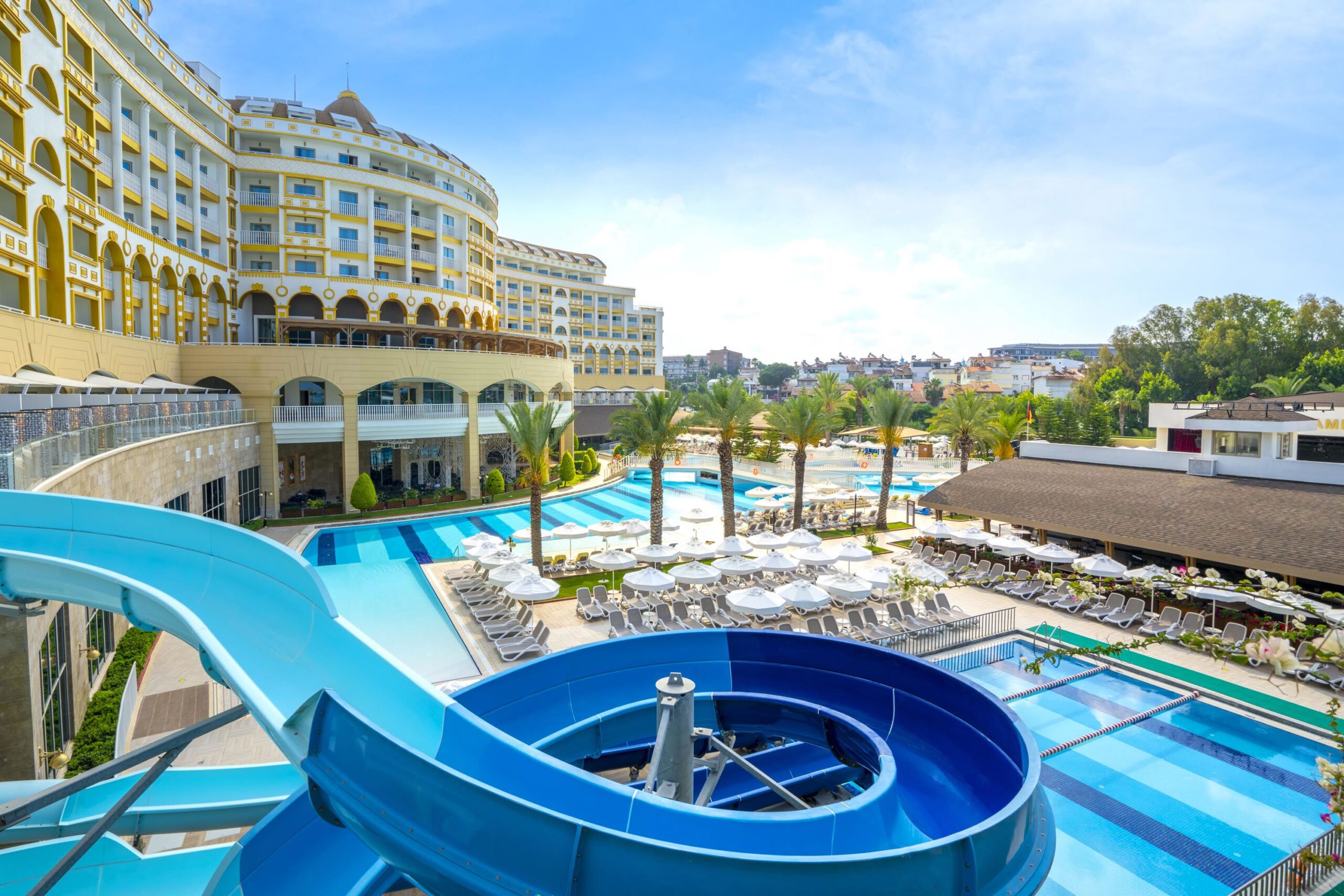 Zomer Wanneer je tussen 03-04-2026 en 15-11-2026 in deze accommodatie verblijft, is onderstaande informatie van toepassing. * Ligging * Privéstrand op circa 450 meter * Zandstrand * Ligbedden * Parasol * Dichtstbijzijnde winkel op circa 10 kilometer * Kumkoy op circa 3 kilometer * manavgat op circa 10 kilometer * Algemeen & faciliteiten * 5 gebouwen * Maximaal 5 verdiepingen * 176 kamers * Receptie * 24 uur per dag * Lobby * Meerdere liften * Niet in elk gebouw een lift * Bagageruimte * Wifi in alle openbare ruimtes * Meerdere winkels * Minimarkt * Wasservice tegen betaling * Doktersservice tegen betaling * Privé parkeergelegenheid * Restaurants & bars * Buffetrestaurant * À-la-carterestaurant * 3 drinkgelegenheden * Bar * Beachbar * Lobbybar * Activiteiten & ontspanning * Darts * Fitness * Tafeltennis * Spafaciliteiten * Sauna * Turks stoombad * Massages tegen betaling * Animatie * Zwembaden * Buitenzwembad * Buitenzwembad voor kinderen * Zonneterras * Ligbedden met matrasjes * Parasol * Badhanddoekenservice tegen betaling * Kinderfaciliteiten * Minidisco * Buitenspeeltuin * Babybedje als preferentie toe te voegen in het boekingsformulier * Verzorging * All Inclusive * Ontbijt in buffetvorm (07.30-09.30 uur) * Laat ontbijt in buffetvorm (09.30-10.00 uur) * Lunch in buffetvorm (12.30-14.00 uur) * Diner in buffetvorm (19.00-21.00 uur) * Snacks (12.30-14.00 uur) * Koffie, thee & koekjes (15.45-16.45 uur) * IJs * Middernachtsnack (23.00-00.00 uur) * Selectie lokale (non-)alcoholische drankjes (10.00-00.00 uur) * Tegen betaling: import drankjes en verse vruchtensappenHotelkamers * 2-persoonskamer Voordeel DE * Speciaal tarief * Locatie, formaat, uitzicht en/of faciliteiten kunnen afwijken ten opzichte van andere kamertypes * Oppervlakte van circa 16 m² * Airconditioning * Kluisje tegen betaling * Televisie * Telefoon tegen betaling * Eet- en drinkfaciliteiten * Koffie- en theefaciliteiten * Minibar * Bij aankomst gevuld met water * Badkamer douche, toilet en föhn * Wifi * 2-persoonskamer Standaard DZ * Oppervlakte van circa 21 m² * Airconditioning * Kluisje tegen betaling * Televisie * Telefoon tegen betaling * Eet- en drinkfaciliteiten * Koffie- en theefaciliteiten * Minibar * Bij aankomst gevuld met water * Badkamer douche, toilet en föhn * Wifi * Balkon (zitje) * Familiekamer Standaard FZ * Oppervlakte van circa 35 m² * Meerdere slaapkamers * Airconditioning * Kluisje tegen betaling * Televisie * Telefoon tegen betaling * Eet- en drinkfaciliteiten * Koffie- en theefaciliteiten * Minibar * Bij aankomst gevuld met water * Badkamer douche, toilet en föhn * Wifi * Balkon (zitje)