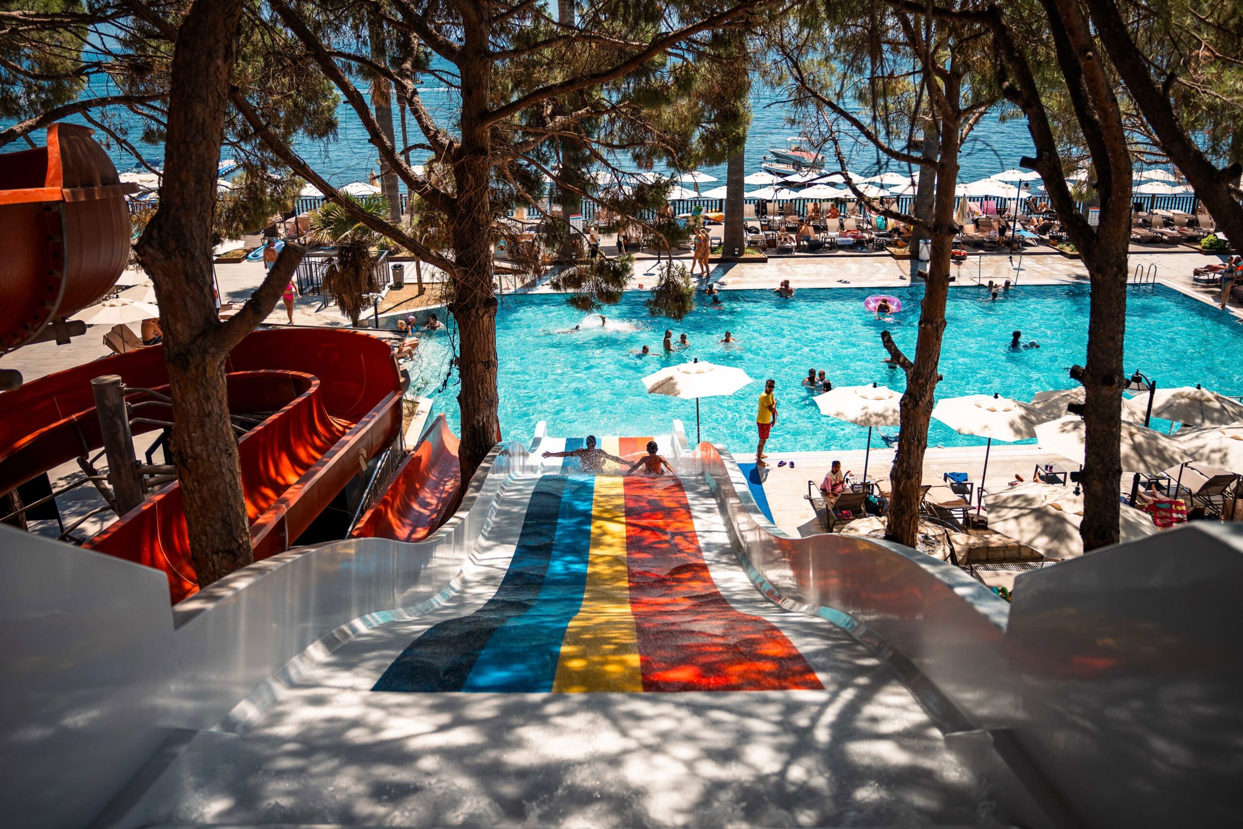 Zomer Wanneer je tussen 25-04-2025 en 31-10-2025 in deze accommodatie verblijft, is onderstaande informatie van toepassing. * Ligging * Gelegen aan het privéstrand * Ligbedden met matrasjes * Parasol * Centrum van Kusadasi op circa 4 kilometer * Centrum van Davutlar op circa 12 kilometer * Dichtstbijzijnde winkel op circa 1 kilometer * Dichtstbijzijnde restaurant op circa 1 kilometer * Dichtstbijzijnde bar op circa 4 kilometer * Bushalte (op loopafstand) * Algemeen & faciliteiten * 6 gebouwen * Maximaal 5 verdiepingen * 249 kamers * Receptie * 24 uur per dag * Lobby * 3 liften * Niet in elk gebouw een lift * Bagageruimte * Wifi in alle openbare ruimtes * Meerdere winkels * Minimarkt * Wasservice tegen betaling * Doktersservice tegen betaling * Tuin * Openbare parkeergelegenheid * Privé parkeergelegenheid * Restaurants & bars * Buffetrestaurant * 3 à-la-carterestaurants (vooraf reserveren) * Mexicaans restaurant * Turks restaurant * Visrestaurant * Patisserie * IJssalon * Roomservice * 5 drinkgelegenheden * 5 bars * Activiteiten & ontspanning * Aerobics * Basketbal * Beachvolleybal * Boccia * Darts * Fitness * Tafelvoetbal * Voetbal * Volleybal * Watersporten tegen betaling * Yoga * Spafaciliteiten * Sauna * Hamam * Massages tegen betaling * Gameroom * Animatie * Shows * Livemuziek * Zwembaden * 3 buitenzwembaden * Bij één van deze zwembaden geldt een minimumleeftijd van 16 jaar * Eén van deze zwembaden heeft 2 glijbanen * Buitenzwembad voor kinderen * 2 glijbanen * Bubbelbad buiten * Binnenzwembad * Verwarmd * Zonneterras * Ligbedden met matrasjes * Parasol * Badhanddoekenservice * Kinderfaciliteiten * Mini club (4-12 jaar) * Minidisco * Buitenspeeltuin * Babybedje als preferentie toe te voegen in het boekingsformulier * Babysitservice tegen betaling * ter plaatse op aanvraag * Verzorging * Ultra All Inclusive * Ontbijt in buffetvorm (07.00-10.00 uur) * Laat ontbijt in buffetvorm (10.00-10.30 uur) * Lunch in buffetvorm (12.30-14.00 uur) * Diner in buffetvorm (19.00-21.00 uur) * Snacks (11.00-16.00 uur) * Koffie, thee & koekjes (11.00-19.00 uur) * IJs (14.00-16.00 uur) * Middernachtsnack (00.00-01.00 uur) * Selectie geïmporteerde drankjes * Selectie lokale (non-)alcoholische drankjes (24 uur per dag) * Tegen betaling: import drankjes en roomserviceHotelkamers * 2-persoonskamer Club DC * Oppervlakte van circa 24 m² * In het clubgedeelte * Airconditioning * Kluisje * Televisie * Telefoon tegen betaling * Eet- en drinkfaciliteiten * Koffie- en theefaciliteiten * Minibar * Badkamer douche, toilet en föhn * Wifi * Balkon of terras (zitje) * 2-persoonskamer Hoofdgebouw DH * Oppervlakte van circa 25 m² * In het hoofdgebouw * Tuinzicht * Airconditioning * Kluisje * Televisie * Telefoon tegen betaling * Eet- en drinkfaciliteiten * Koffie- en theefaciliteiten * Minibar * Badkamer douche, toilet en föhn * Wifi * Balkon of terras (zitje) * 2-persoonskamer Superior Hoofdgebouw DSA * Oppervlakte van circa 25 m² * In het hoofdgebouw * Tuinzicht * Airconditioning * Kluisje * Televisie * Telefoon tegen betaling * Eet- en drinkfaciliteiten * Koffie- en theefaciliteiten * Minibar * Badkamer douche, toilet en föhn * Wifi * Balkon (zitje) * Familiekamer Club FC1 * Oppervlakte van circa 24 m² * In het clubgedeelte * Twee standaardkamers met tussendeur * Airconditioning * Kluisje * Televisie * Telefoon tegen betaling * Eet- en drinkfaciliteiten * Koffie- en theefaciliteiten * Minibar * Badkamer douche, toilet en föhn * Wifi * Balkon of terras (zitje) * Familiekamer Club FC2 * Oppervlakte van circa 33 m² * In het clubgedeelte * Twee standaardkamers met tussendeur * Airconditioning * Kluisje * Televisie * Telefoon tegen betaling * Eet- en drinkfaciliteiten * Koffie- en theefaciliteiten * Minibar * 2 badkamers * Meerdere badkamers met douche, toilet en föhn * Wifi * Balkon of terras (zitje) * Familiekamer Club Swimup FCZ * Oppervlakte van circa 31 m² * In het clubgedeelte * Tuinzicht * Twee standaardkamers met tussendeur * Airconditioning * Kluisje * Televisie * Telefoon tegen betaling * Eet- en drinkfaciliteiten * Koffie- en theefaciliteiten * Minibar * Badkamer douche, toilet en föhn * Wifi * Terras (zitje) * Directe toegang tot het gedeelde zwembad * Familiekamer Hoofdgebouw Swimup FHZ * Oppervlakte van circa 31 m² * In het hoofdgebouw * Tuinzicht * Twee standaardkamers met tussendeur * Airconditioning * Kluisje * Televisie * Telefoon tegen betaling * Eet- en drinkfaciliteiten * Koffie- en theefaciliteiten * Minibar * Badkamer douche, toilet en föhn * Wifi * Balkon of terras (zitje) * Directe toegang tot het gedeelde zwembad